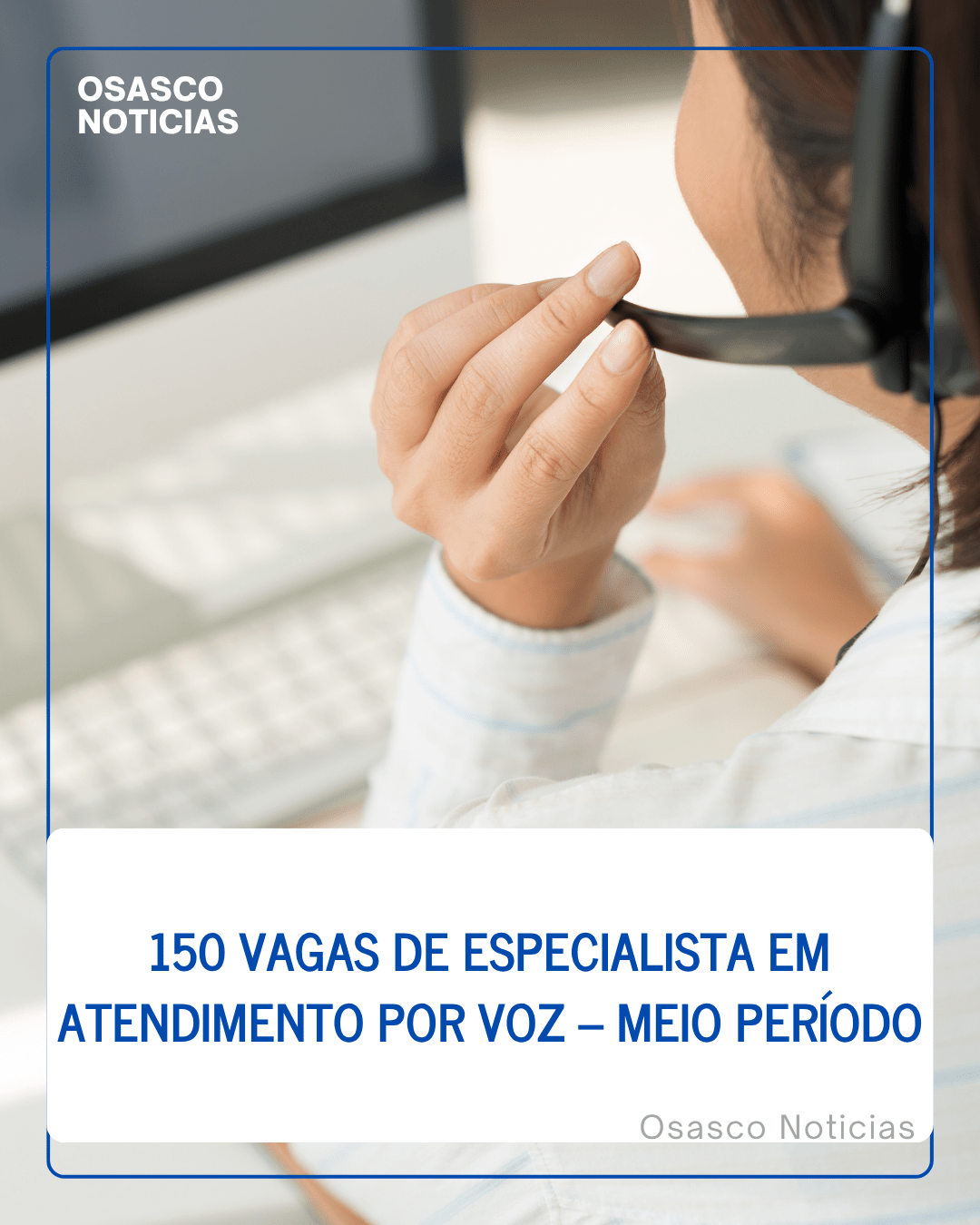 <p data-start="167" data-end="343"><strong data-start="167" data-end="191">Uma empresa, que não foi divulgado o nome</strong> está com <strong data-start="201" data-end="214">150 vagas</strong> abertas para <strong data-start="228" data-end="267">Especialista em Atendimento por Voz</strong> na unidade de <strong data-start="282" data-end="295">Osasco/SP</strong>, em regime <strong data-start="307" data-end="321">presencial</strong> e <strong data-start="324" data-end="340">meio período</strong>.</p>