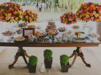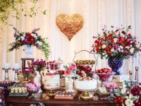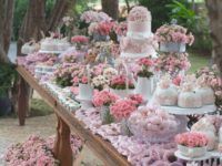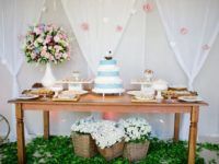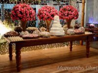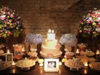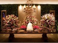 A mesa do bolo é um dos pontos de maior destaque de uma decoração de casamento, por isso mesmo, merece toda a atenção. Além dos doces e logicamente que do bolo, a mesa merece flores, velas, detalhes que vão valorizar toda a sua decoração.