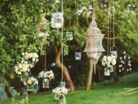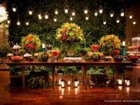 Um tipo de arranjo que é muito utilizado e sempre faz muito sucesso são as flores e as velas penduradas, que criam um ambiente muito mais romântico e agradável.