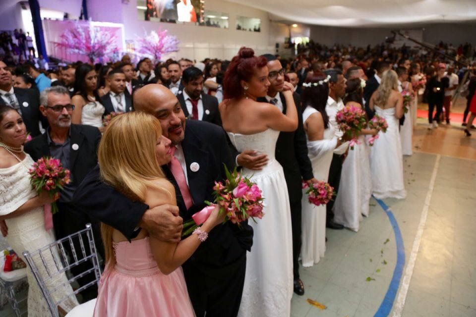 A cerimônia foi realizada, nesta manhã de sábado (27), no ginásio da FITO, no Jardim das Flores. Dentre os casais, que entoaram um grande sim coletivo, os noivos Rosana e Vanderlei foram escolhidos para representar todos os presentes. O casal, que se conheceu na década de 90, ficou 27 anos separado e, hoje, se unem em matrimônio.
