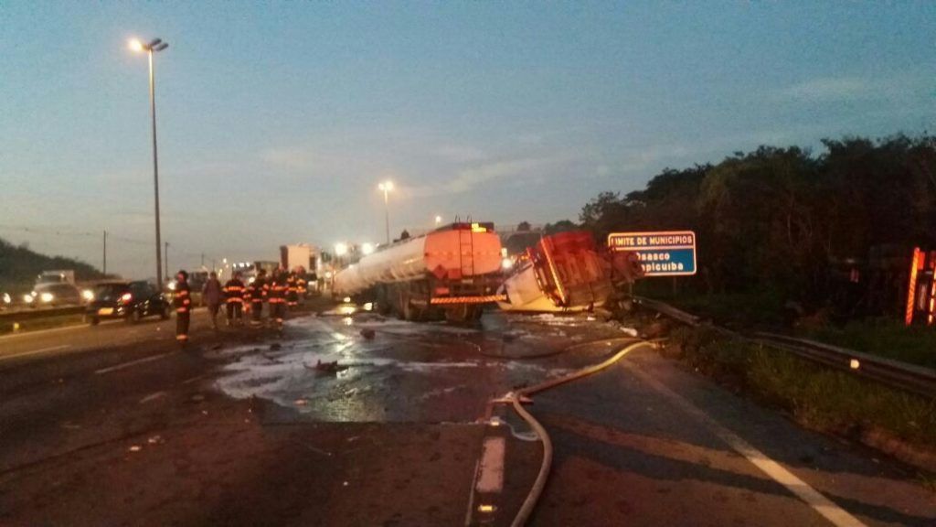 No momento o tráfego sentido litoral está lento devido somente uma das três faixas ser utilizada para passagem de veículos.