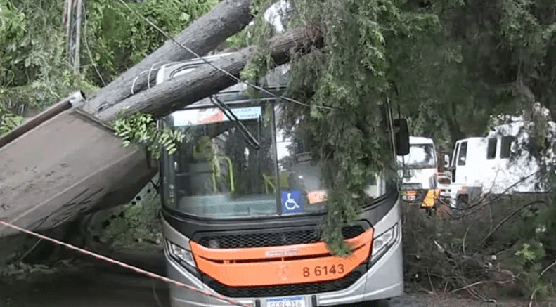 <p>A chuva que caiu na Grande São Paulo, na tarde desta quinta-feira (13), provocou inúmeros estragos. Entre as ocorrências, uma árvore que caiu sobre um ônibus em Osasco, na avenida Manoel Pedro</p>