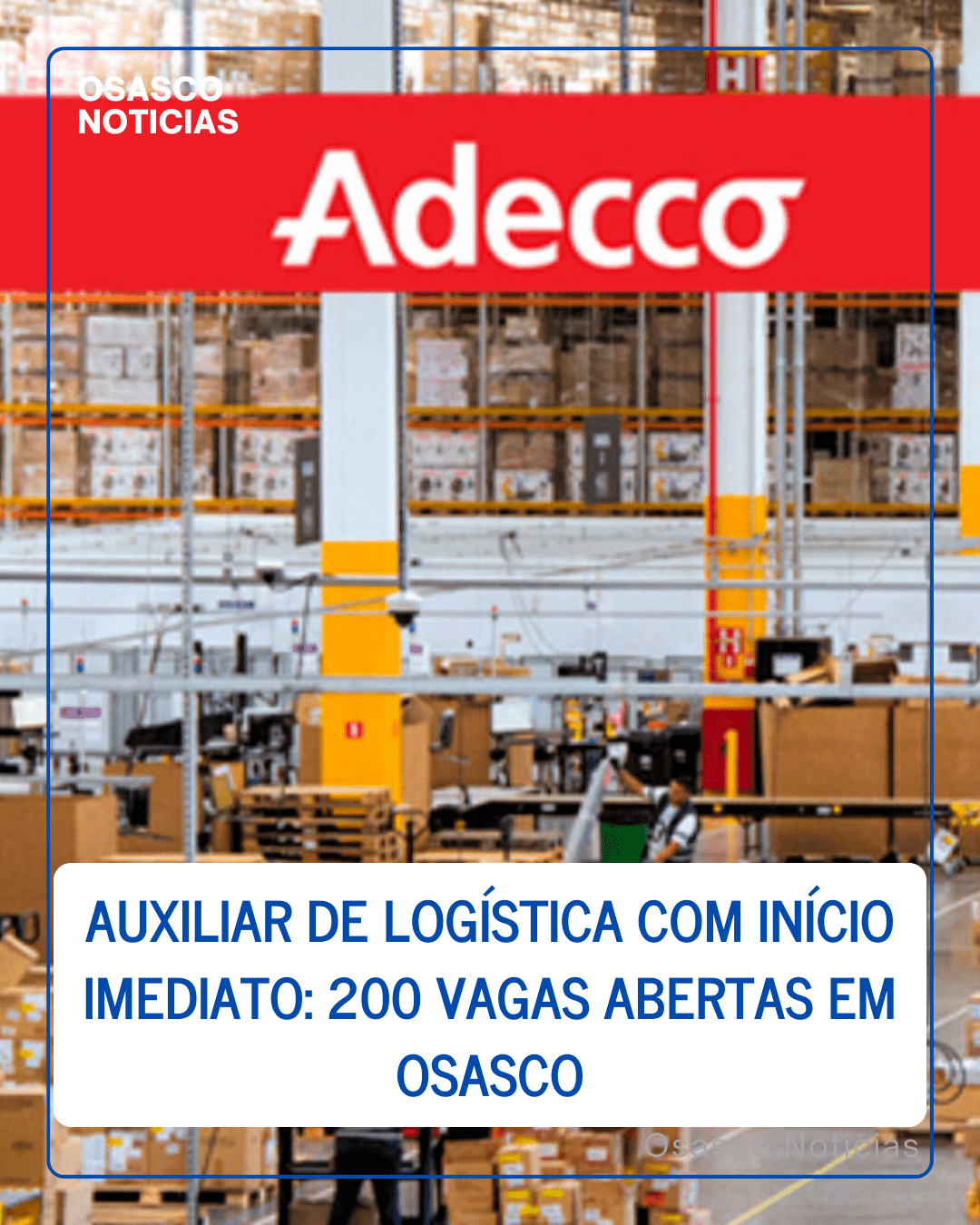 <p data-start="80" data-end="354">Uma grande oportunidade para quem busca <strong data-start="120" data-end="161">emprego com início imediato em Osasco</strong>. Estão abertas <strong data-start="177" data-end="240">200 vagas temporárias para o cargo de Auxiliar de Logística</strong>, com atuação em <strong data-start="257" data-end="283">Centro de Distribuição</strong>, contratação pela <strong data-start="302" data-end="312">Adecco</strong>, uma das maiores empresas de RH do mundo.</p>