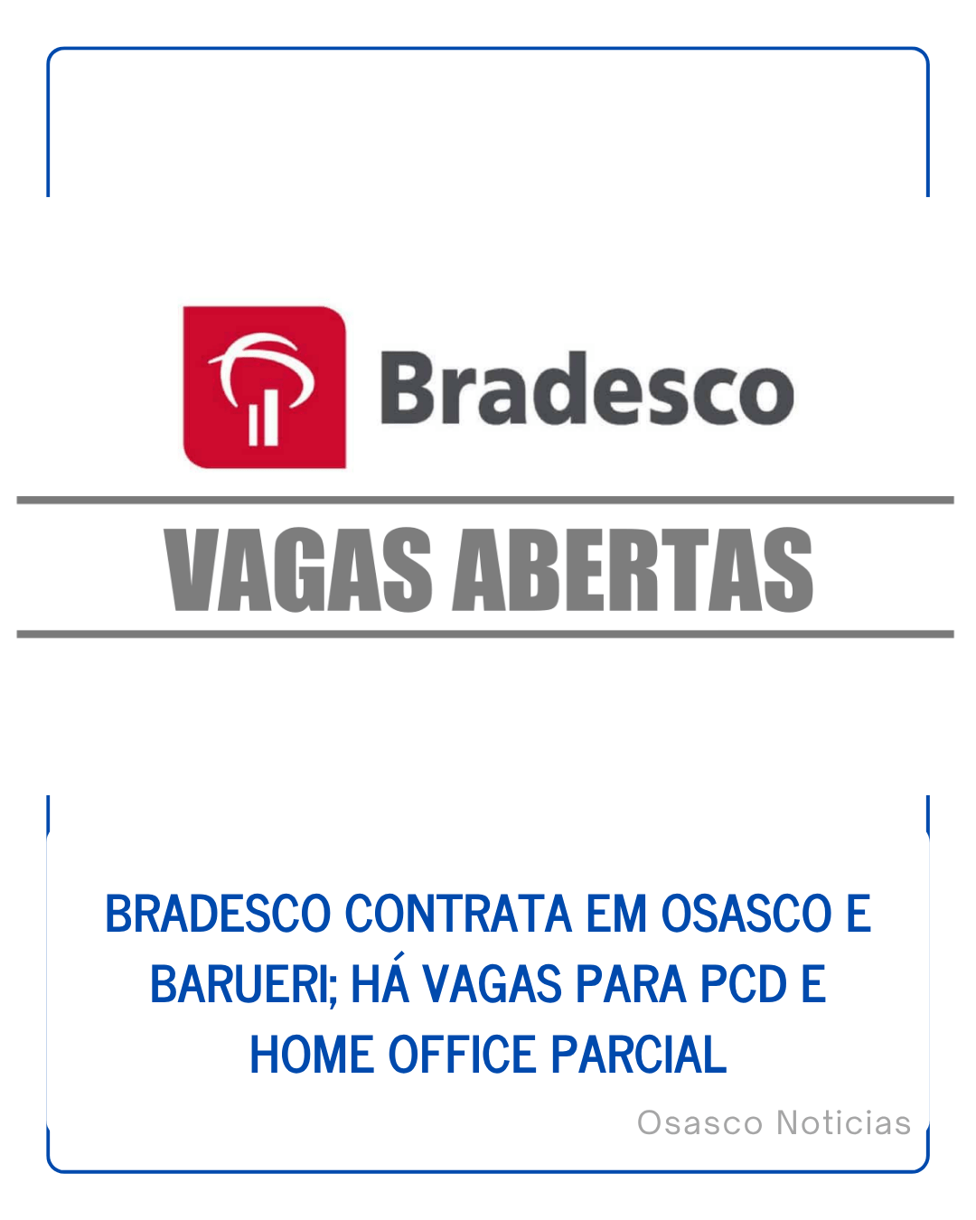 <p data-start="259" data-end="584">O <strong data-start="261" data-end="273">Bradesco</strong>, um dos maiores grupos financeiros do Brasil, está com <strong data-start="329" data-end="352">89 vagas de emprego</strong> abertas nas cidades de <strong data-start="376" data-end="386">Osasco</strong> e <strong data-start="389" data-end="413">Barueri (Alphaville)</strong>. As oportunidades incluem <strong data-start="440" data-end="484">vagas para pessoas com deficiência (PcD)</strong> e contam com <strong data-start="498" data-end="530">modelos híbridos de trabalho</strong>, que combinam home office e atividades presenciais.</p>