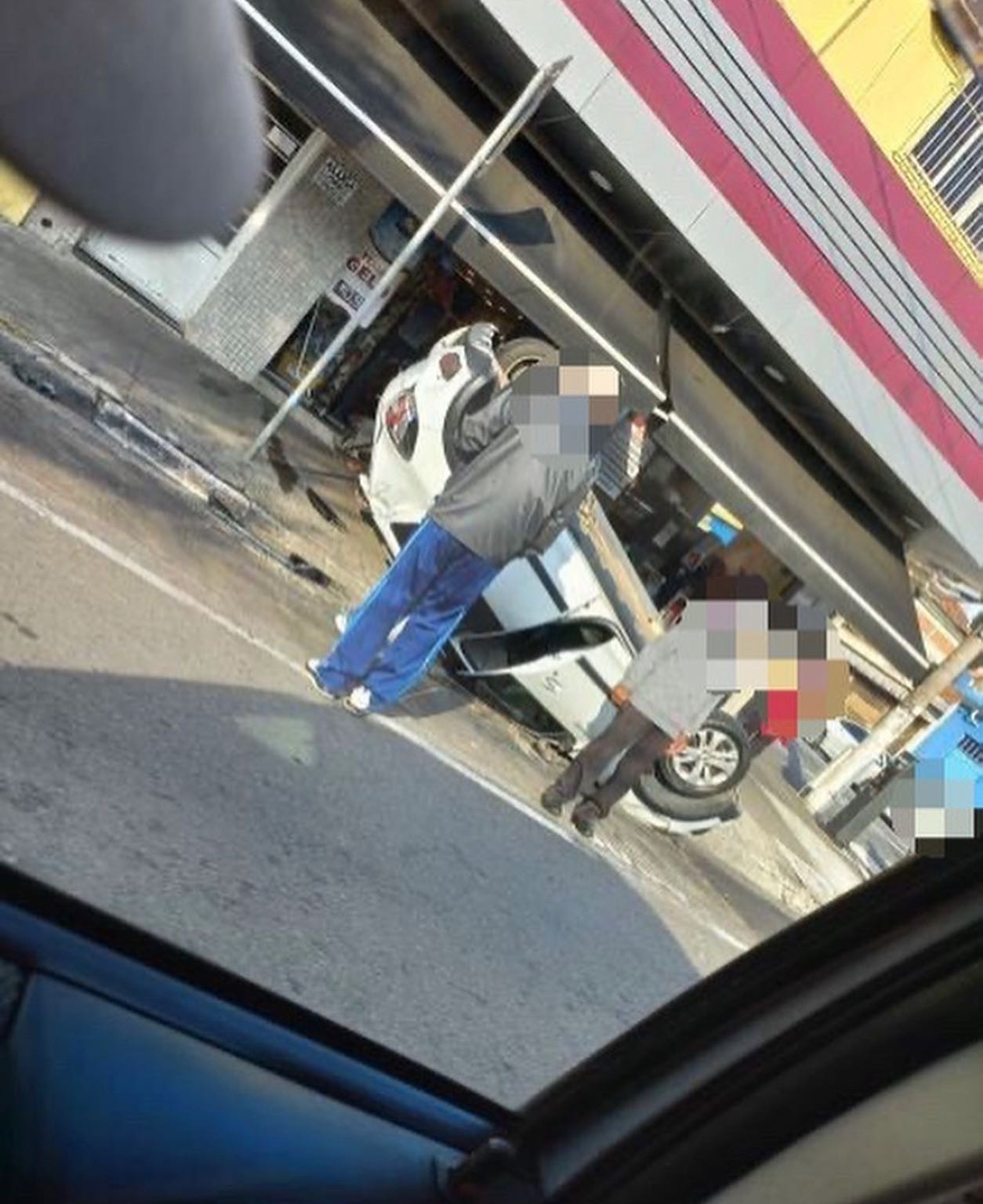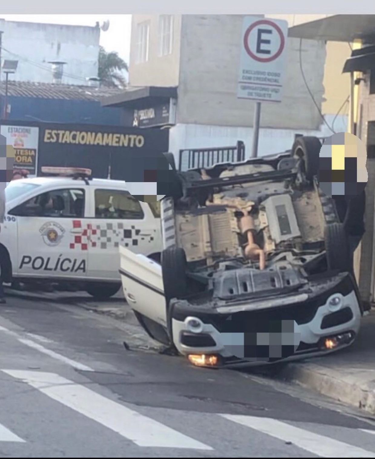 Um carro capotou na Rua Prof. José Azevedo Minhoto, em frente a padaria Bella Jully, no bairro Km 18.