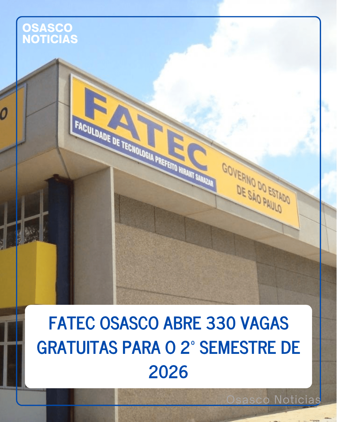 <p data-start="106" data-end="490">A Fatec Osasco (Faculdade de Tecnologia Prefeito Hirant Sanazar) está com inscrições abertas para o vestibular do segundo semestre de 2026. Ao todo, são <strong data-start="259" data-end="282">330 vagas gratuitas</strong> distribuídas em sete cursos superiores de tecnologia, em diferentes períodos. A oportunidade faz parte do processo seletivo do Centro Paula Souza, que soma mais de 18 mil vagas em todo o estado de São Paulo.</p>