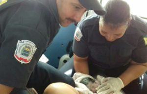 A guarda Regina e o colega Da Cunha concluíram o parto, de um menino, que nasceu saudável. Ele e a mãe foram encaminhados para atendimento médico e passam bem.