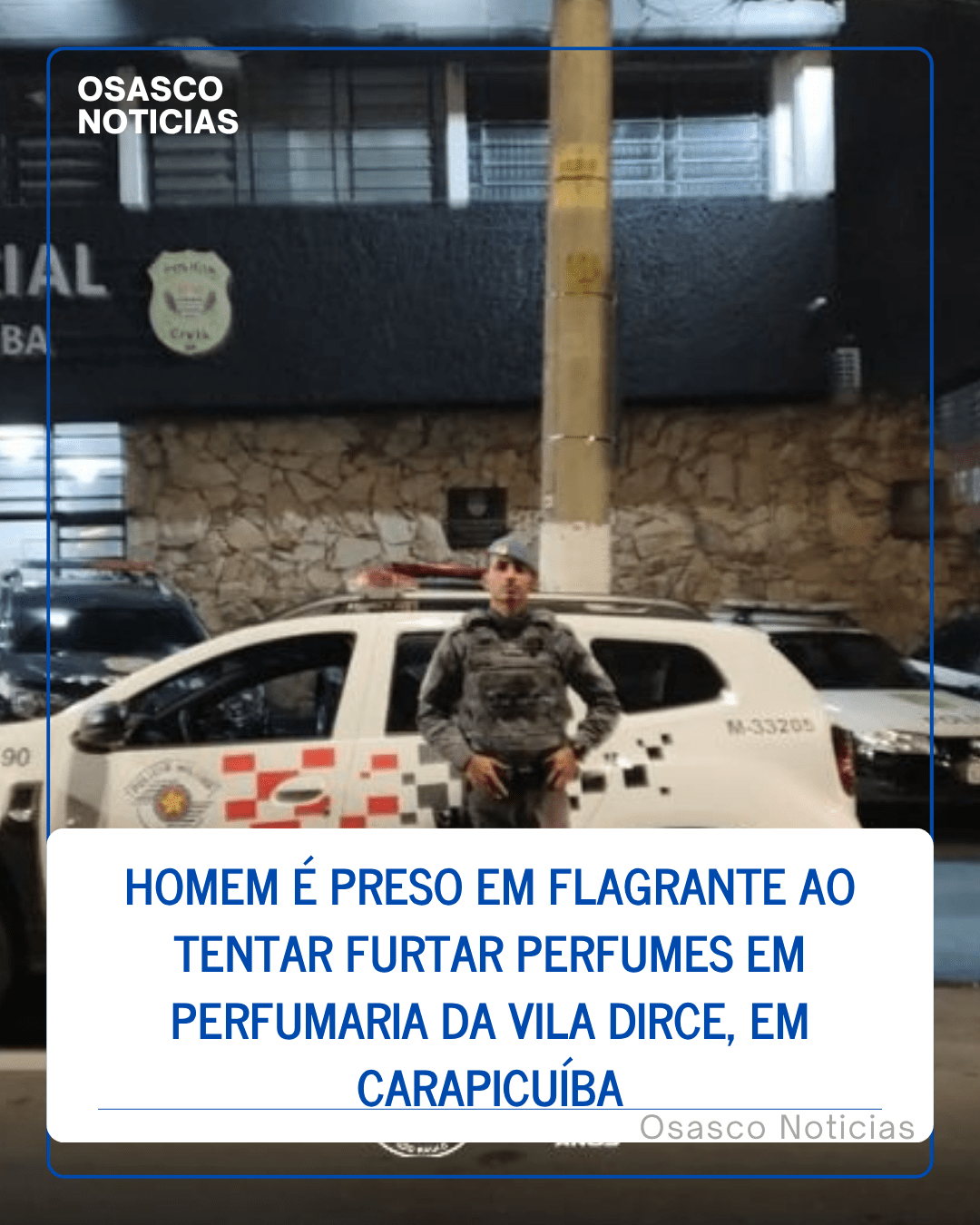 <div class="_1mf _1mj" data-offset-key="1n90d-0-0"><span data-offset-key="1n90d-0-0">Na noite de Segunda(13), policiais militares do 33º Batalhão de Polícia Militar Metropolitano prenderam em flagrante um homem acusado de tentar furtar dois frascos de perfume em uma perfumaria localizada na Estrada Ernestina Viêira, no bairro Vila Dirce, em Carapicuíba.</span></div>