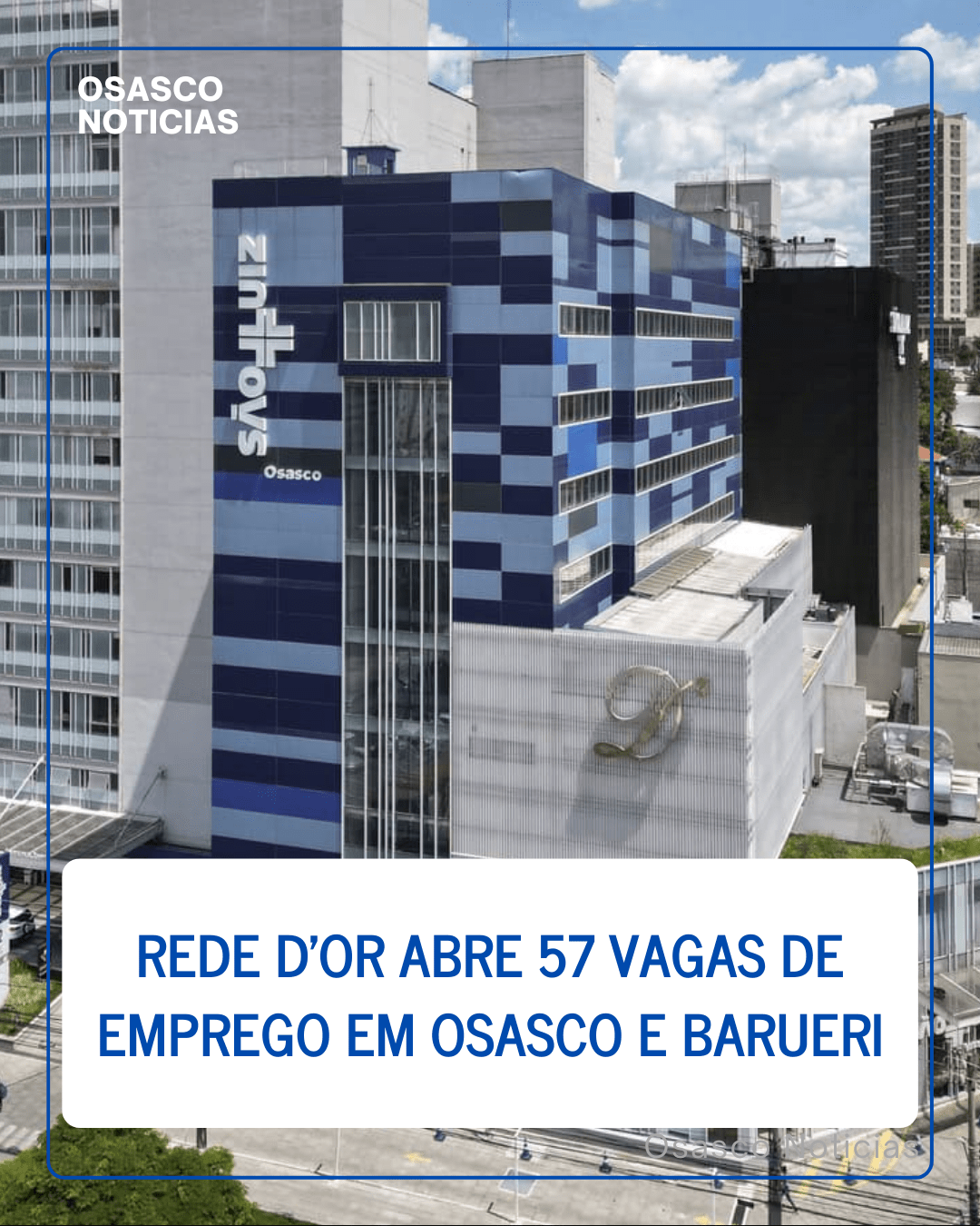A Rede D’Or está com 57 oportunidades de trabalho abertas para diferentes áreas na unidade de Osasco.