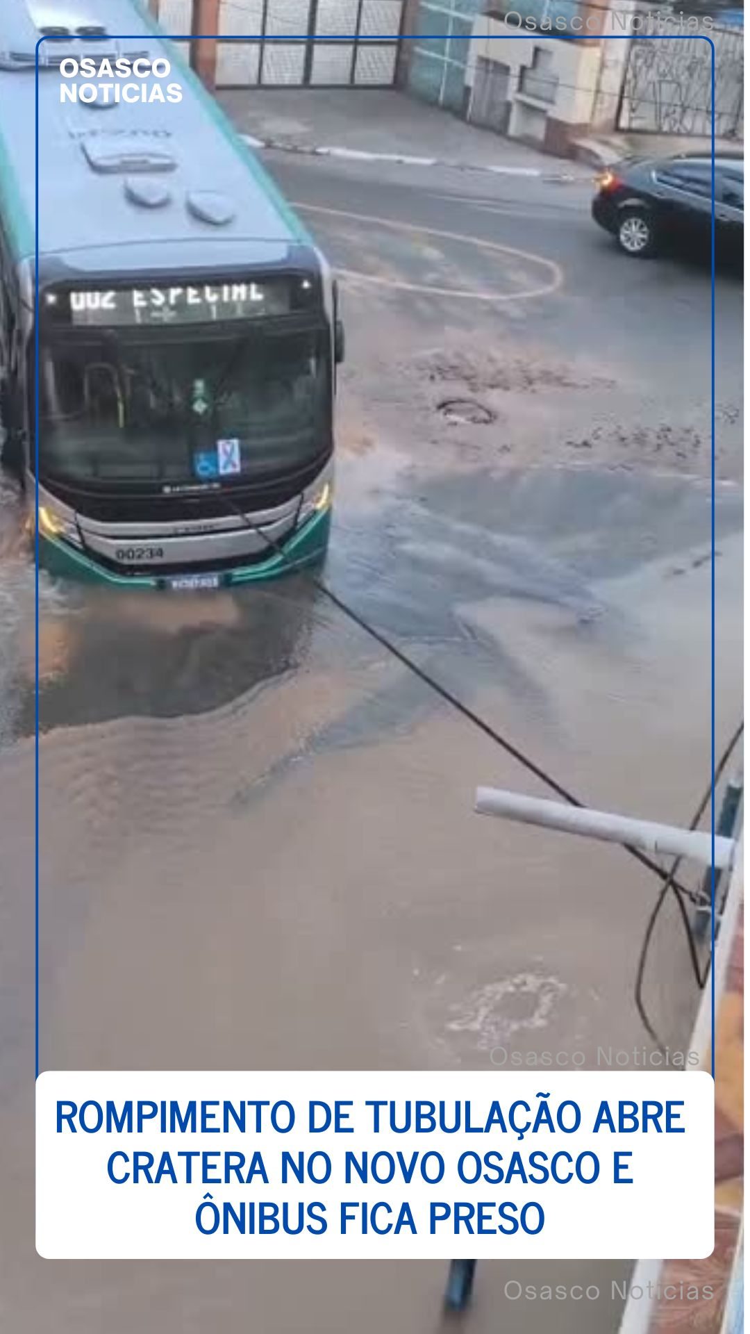 <p data-start="131" data-end="484">Por volta das 3h da manhã desta sexta-feira (17), um ônibus — que seguia para iniciar sua linha — acabou caindo em um buraco após o rompimento de uma tubulação na Rua Jesuíno Antônio, altura do número 850, no bairro Novo Osasco. O incidente causou um grande vazamento de água, que se espalhou pela via e começou a invadir as garagens das residências.</p>
