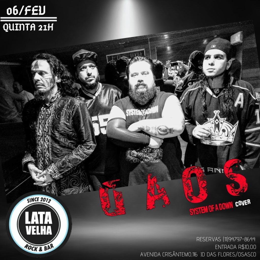 O Lata Velha Rock Bar é um dos points mais badalados da região quando o assunto é Rock’n’Roll e vem investindo cada vez mais em bandas de qualidade. Nesta semana, depois de inúmeros pedidos de clientes do bar o show fica por conta da Banda Daos, fazendo um super cover de System of a Down.