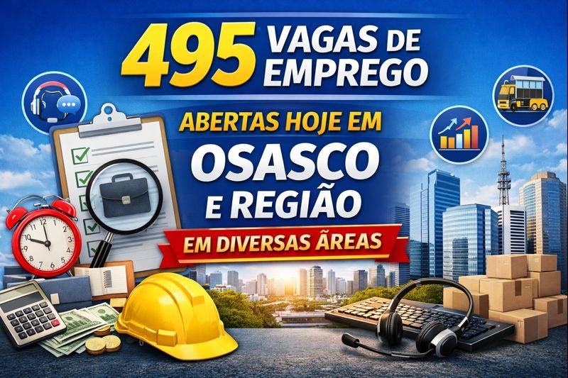 <p data-start="248" data-end="537">Quem está em busca de uma nova oportunidade no mercado de trabalho pode comemorar. <strong data-start="331" data-end="386">Na data de hoje, estão abertas 495 vagas de emprego</strong> em <strong data-start="390" data-end="409">Osasco e região</strong>, distribuídas em <strong data-start="427" data-end="471">diferentes áreas e níveis de experiência</strong>, incluindo cargos administrativos, operacionais e de atendimento.</p>